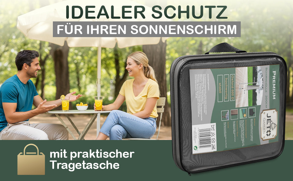 - Jéto Qualitätsversprechen: Jéto Schutzhüllen sind die perfekte Wahl, um Ihren Schirm vor Regen, Schnee, Sonne und anderen Witterungseinflüssen zu schützen. Sollten Sie Fragen haben, stehen wir Ihnen selbstverständlich jederzeit zur Verfügung. Zögern Sie nicht, uns zu kontaktieren – wir sind gerne für Sie da.